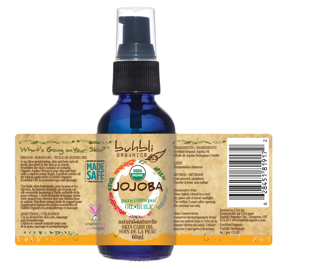 Organic Jojoba Oil is an ultra-moisturizing, world famous skin and hair care oil easily absorbed by the skin as it closely resembles the skins natural oil (sebum). Loaded with skin enhancing vitamin E, unique liquid waxes and fatty acids, Organic Jojoba Oil leaves your skin and hair with a smooth satiny finish. Excellent as a carrier oil for topical application of Buhbli Organics Essential Oils in aromatherapy and massage.